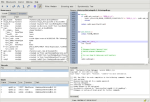 Si es un depurador de nivel de fuente o depurador simbólico, comúnmente ahora visto en entornos de desarrollo integrados, cuando el programa "se estrella" o alcanza una condición predefinida, la depuración típicamente muestra la posición en el código original. Si es un depurador de bajo nivel o un depurador de lenguaje de máquina, muestra la línea en la fuente desensamblado (a menos que también tenga acceso en línea al código fuente original y pueda exhibir la sección apropiada del código del ensamblador o del compilador). Un "estrellamiento" sucede cuando el programa no puede continuar normalmente debido a un error de programación. Por ejemplo, el programa pudo haber intentado usar una instrucción no disponible en la versión actual del CPU o haber intentado tener acceso a memoria protegida o no disponible.